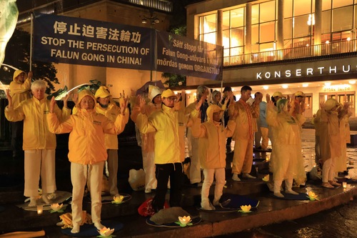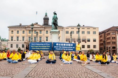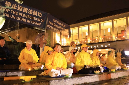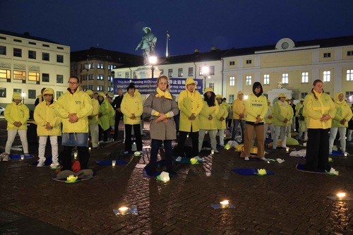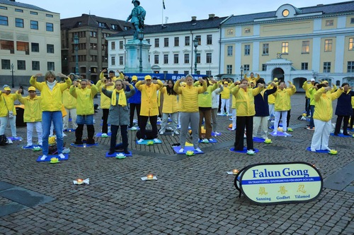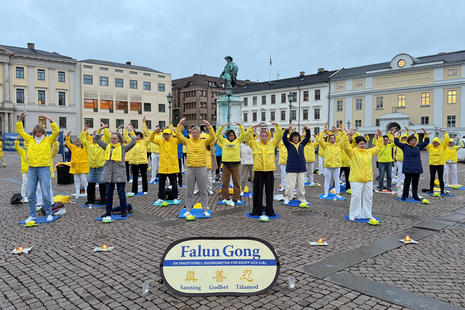 تمرینکنندگان فالون دافا در ۱۹سپتامبر۲۰۲۵، در میدان گوستاف آدولفس تورگ در گوتنبرگ، مراسم شمعافروزی برگزار کردند و تمرینها را به نمایش گذاشتند.