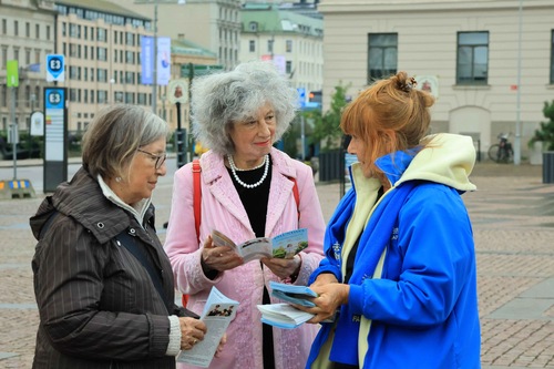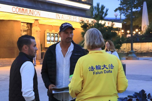 مردمی که از تالار کنسرت در سمت غربی میدان گوتاپلاتسن بیرون میآمدند، تمایل داشتند درباره فالون دافا بیشتر بدانند.