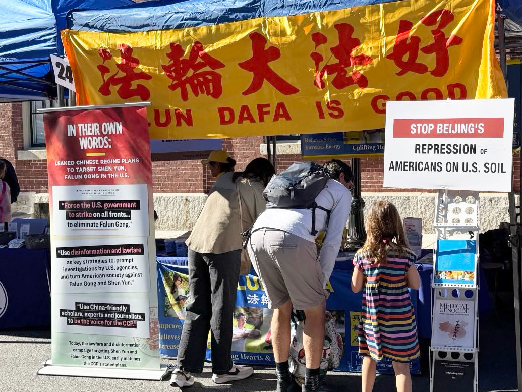 تمرینکنندگان با به نمایش گذاشتن تعدادی تابلو نمایش اطلاعات در این غرفه، خوبیهایی را که فالون دافا برای جهان به ارمغان میآورد و ارتقای سلامتی و اخلاقیات فرد حاصل از تمرین این روش معنوی را نشان دادند. آنها همچنین درباره آزار و شکنجه توسط ح.ک.چ اطلاعرسانی و به مردم یادآوری کردند که «سرکوب فرامرزی ح.ک.چ در کنار ما اتفاق میافتد و به ایالات متحده و جهان رسیده است.» برخی گفتند که فالون دافا مانند چراغ راهنمایی در این دنیای پر از آشوب و سردرگمی است.