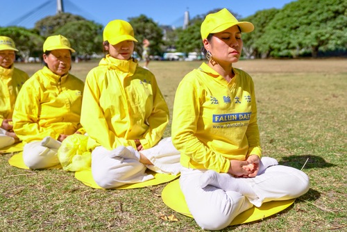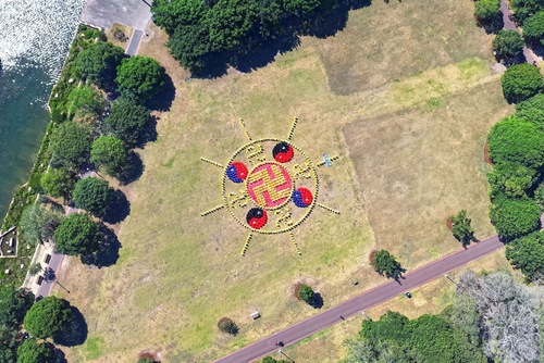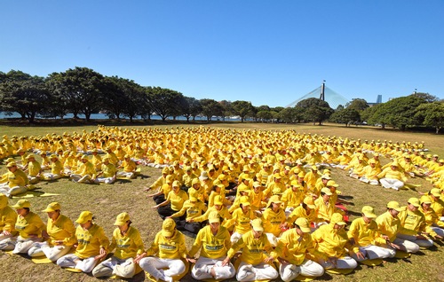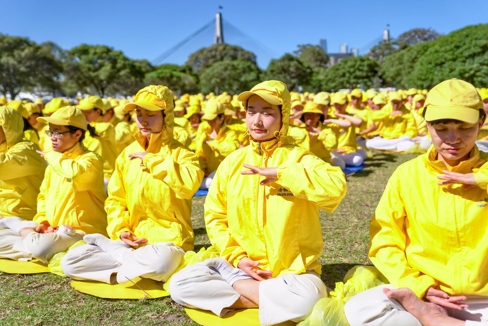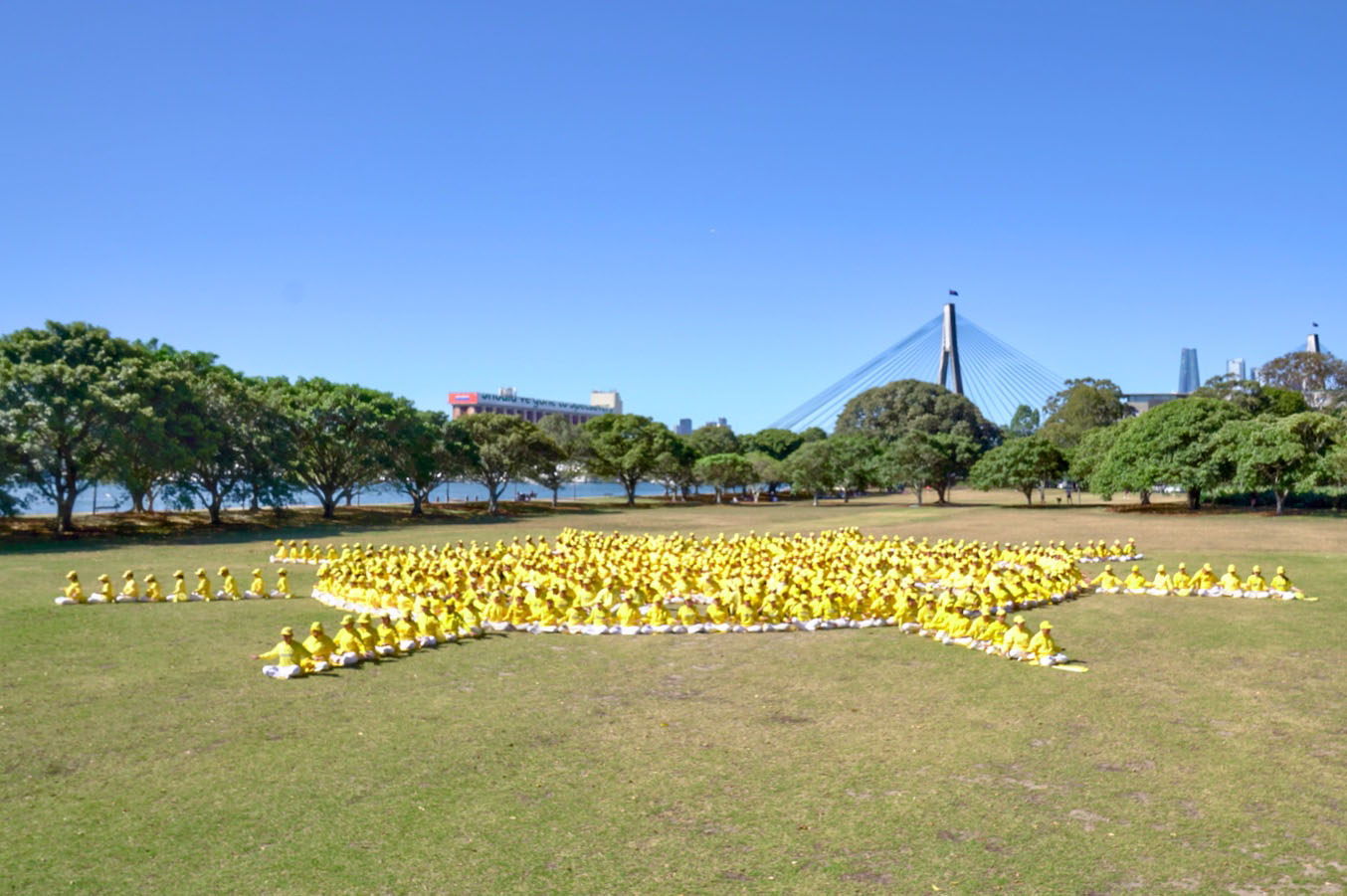 تمرینکنندگان فالون دافا در ۱۱اکتبر۲۰۲۵، در پارک جوبیلی در مرکز سیدنی، تصویری از یک فالون عظیم را تشکیل دادند.
