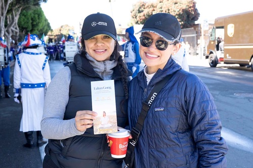پیش از آغاز راهپیمایی، جی دیوید، کارمند فروش یک شرکت فناوری در سان فرانسیسکو، اعضای گروه تیان گوئو را با لباسهای آبی دید و با تلفن همراهش عکسی گرفت. او گفت: «من لباس آبی پوشیدهام و آنها هم آبی پوشیدهاند. خیلی جالب است، برای همین عکس گرفتم.»
