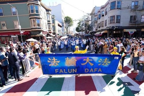 (Minghui.org) گروه مارش تیان گوئو فالون دافا در تاریخ ۱۲اکتبر۲۰۲۵، در راهپیمایی میراث ایتالیایی در سان فرانسیسکو شرکت کرد.