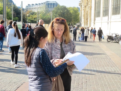(Minghui.org) تمرینکنندگان فالون دافا در تاریخهای ۷ و ۱۱اکتبر۲۰۲۵، در مناطق بلویل و شتله در پاریس، درباره آزار و شکنجه فالون دافا توسط حزب کمونیست چین (ح.ک.چ) به مردم اطلاعرسانی کردند و برای دادخواست پایان دادن به این آزار و شکنجه، امضا جمعآوری کردند.