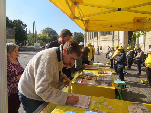 در رویداد شتله در ۱۱اکتبر، تمرینکنندگان تمرینات فالون دافا را بهنمایش گذاشتند و بسیاری از رهگذران، برای تماشای آن توقف کردند. عده زیادی علاقهمند شدند که این تمرین را یاد بگیرند و نشانی محل تمرین در پاریس را یادداشت کردند. بنرها و تابلوهای اطلاعرسانی چشمنوازِ تمرینکنندگان توجه عموم را جلب کرد. مردم پس از آشنایی با فالون دافا و اطلاع از برداشت اعضای بدن زندانیان عقیدتی (که اکثریت آنان تمرینکننده فالون دافا هستند) توسط حکومت چین، خشم خود را ابراز و دادخواست توقف آزار و شکنجه را امضا کردند.