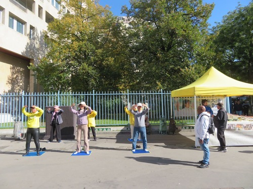 تمرینکنندگان در تاریخ ۷اکتبر، در منطقه بلویل فعالیت مشابهی برگزار کردند. ازآنجاکه روز بازار بود، بسیاری از چینیها حضور داشتند. آنها درباره فالون دافا آگاه شدند و برخی پرسیدند کجا میتوانند تمرین را یاد بگیرند.