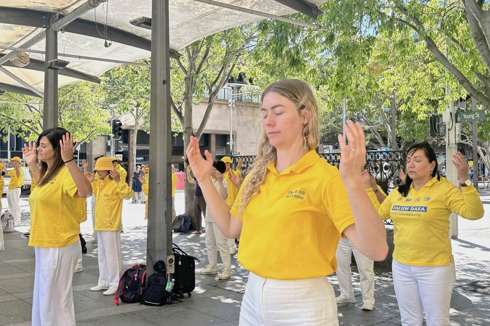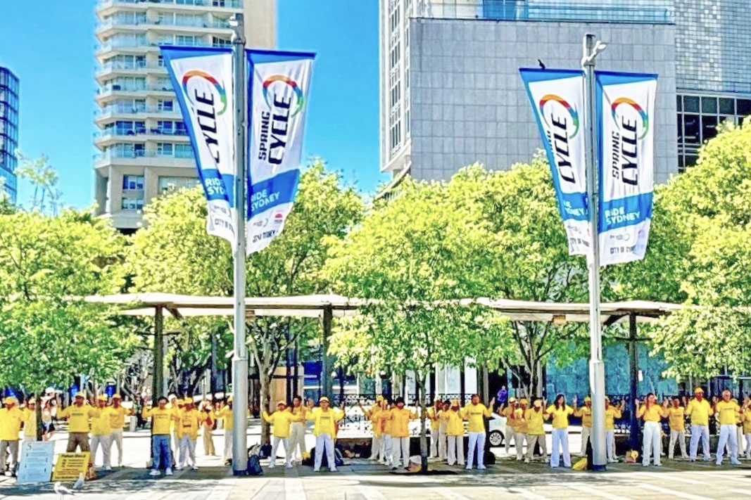 در همان روز، تمرینکنندگان در پارک جوبیلی در مرکز سیدنی، تصویری از نماد فالون را تشکیل دادند. جیمز گیل، مرد جوانی که در سیدنی زندگی میکند، تحت تأثیر این فعالیت قرار گرفت و گفت: «فکر میکنم واقعاً زیباست که افرادی گرد هم آمدهاند. این نشانه اتحاد است. همچنین بسیار تحسینبرانگیز است که همه در روزی بسیار گرم، بدون شکایت بیرون آمدهاند و در یک زمان مشخص، این کار را انجام میدهند. بهنظر میرسد همه از انجام این کار خوشحال هستند. واقعاً تحسینبرانگیز است.»