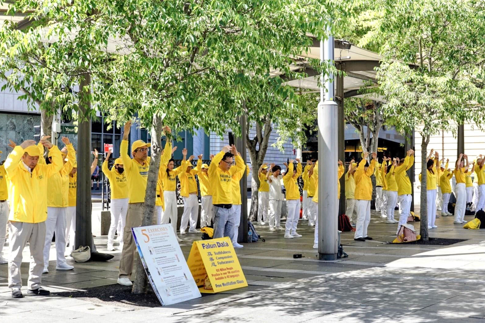 تمرینکنندگان به رهگذران درباره آزار و شکنجه جاری در چین اطلاعرسانی کردند.