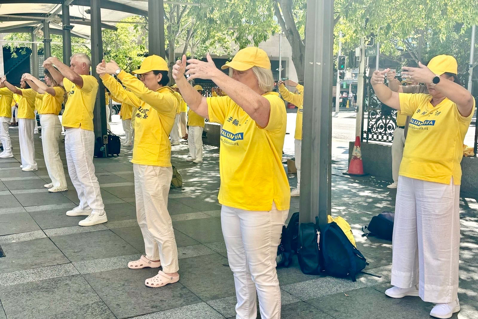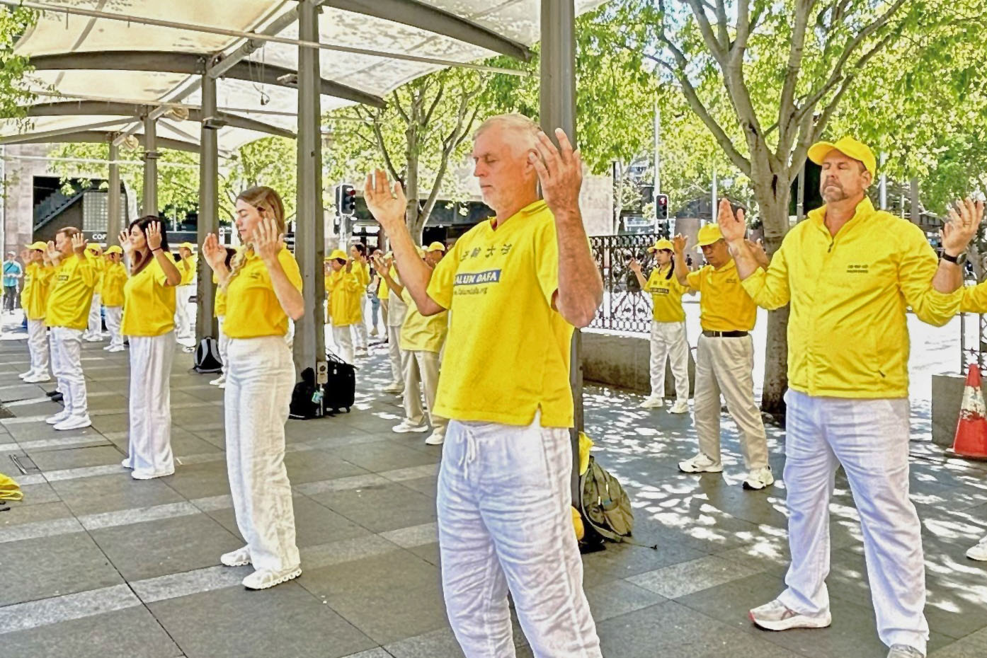 تمرینکنندگان در ۱۱اکتبر۲۰۲۵، در کنار ساختمان گمرک در مرکز شهر سیدنی، رویدادی برگزار کردند.