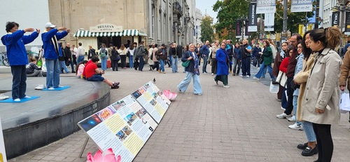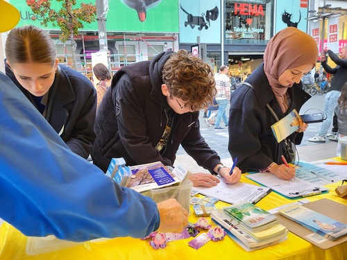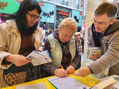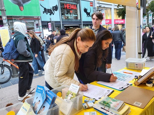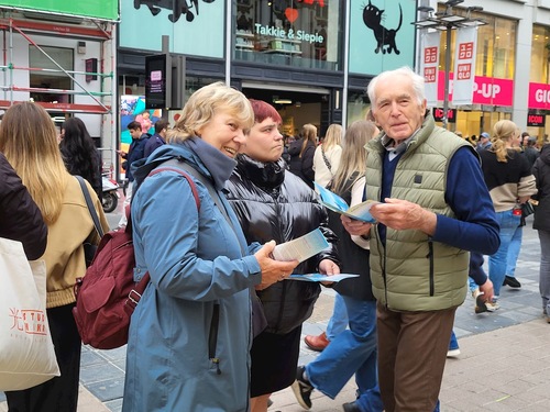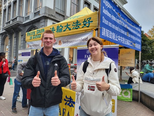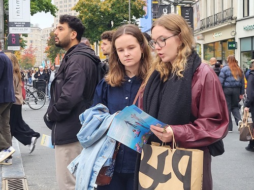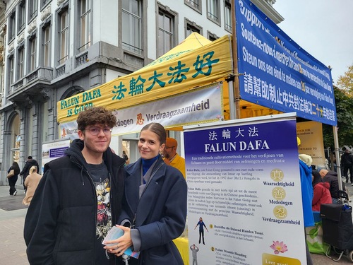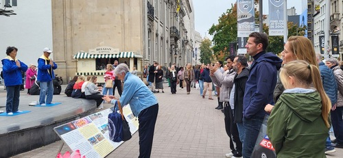 (Minghui.org) تمرینکنندگان فالون دافا روز ۱۱اکتبر۲۰۲۵، در ناحیه خرید مِیر در شهر آنتورپ، بلژیک، به معرفی فالون دافا پرداختند و درباره آزار و شکنجه تمرینکنندگان توسط حزب کمونیست چین (ح.ک.چ) به مردم اطلاعرسانی کردند. بسیاری از رهگذران برای آشنایی بیشتر با فالون دافا توقف و حمایت خود را از پایان آزار و شکنجه اعلام کردند.