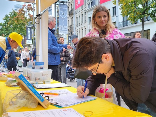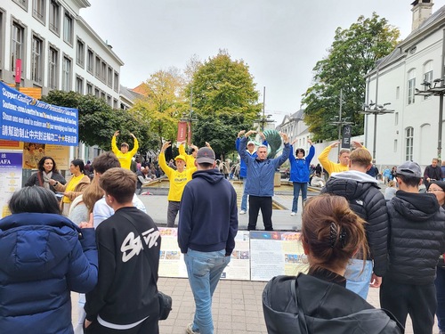 مردم در آنتورپ از فراخوان تمرینکنندگان فالون دافا برای توقف آزار و شکنجه ح.ک.چ حمایت کردند.