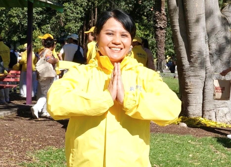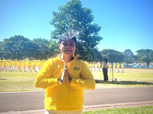 او روز قبل در تجمع تمرینکنندگان در مرکز سیدنی شرکت کرده بود. «افراد زیادی راهپیمایی را تماشا کردند. دیروز مردم با گذاشتن دستهایشان در وضعیت (ههشی) ادای احترام کردند و علامت تأیید نشان دادند. آنها بسیار خوشحال بهنظر میرسیدند. فکر میکنم چون مدتهاست از آزار و شکنجه توسط دولت چین آگاهاند، از حقوق بشر حمایت میکنند و میدانند فالون دافا خوب است، واقعاً خوب.»