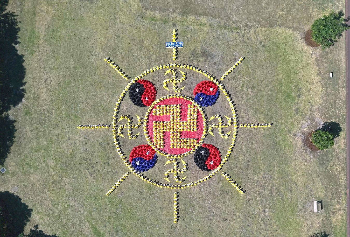 تمرینکنندگان در پارک جوبیلی، تمرینات را انجام دادند و نماد فالون را تشکیل دادند.