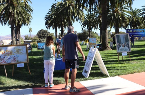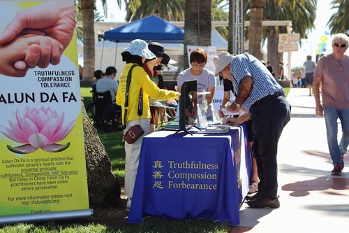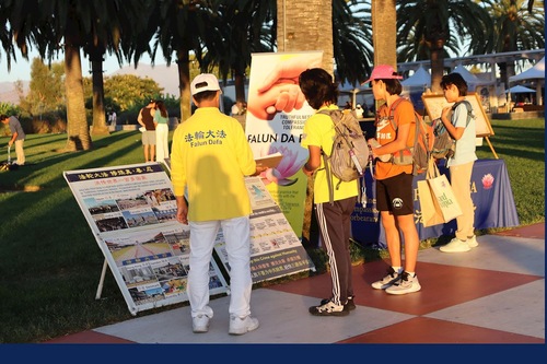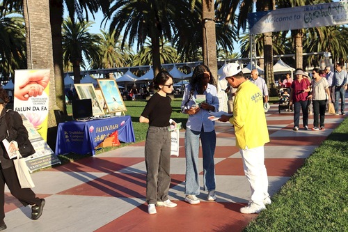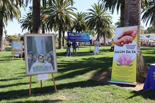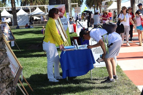 آنها پنج تمرین فالون دافا و آثار نقاشی نمایشگاه بینالمللی هنر حقیقت، نیکخواهی، بردباری را به نمایش گذاشتند تا بازدیدکنندگان بتوانند درباره این تمرین بیشتر بیاموزند.