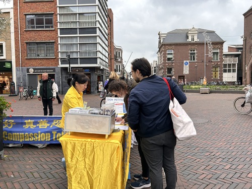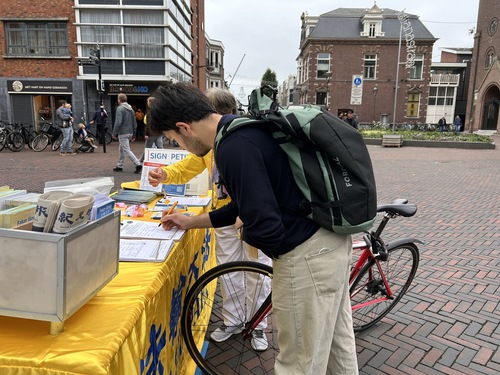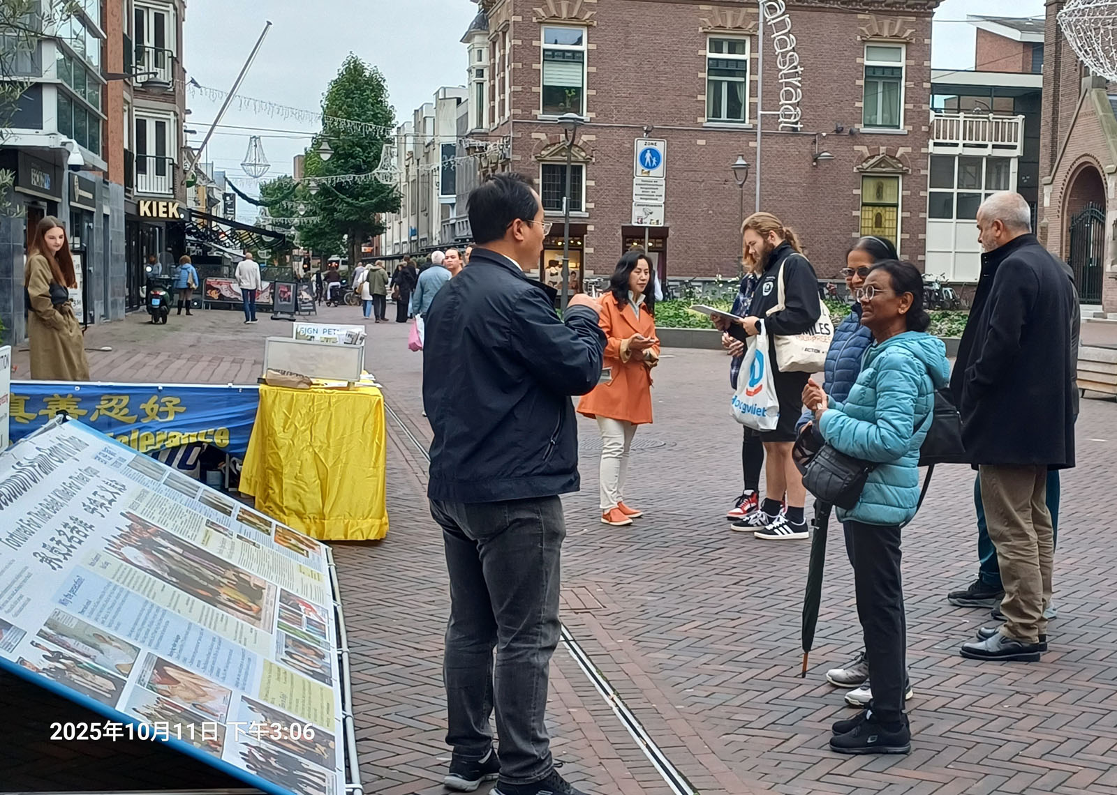 (Minghui.org) رویداد تور اطلاعرسانی در تاریخ ۱۱اکتبر۲۰۲۵ به بخش آلفن آن دن راین، بخشی در جنوب هلند، رسید تا مردم را با فالون دافا آشنا و درباره آزار و شکنجه تمرینکنندگان توسط حزب کمونیست چین (ح.ک.چ) اطلاعرسانی کند.
