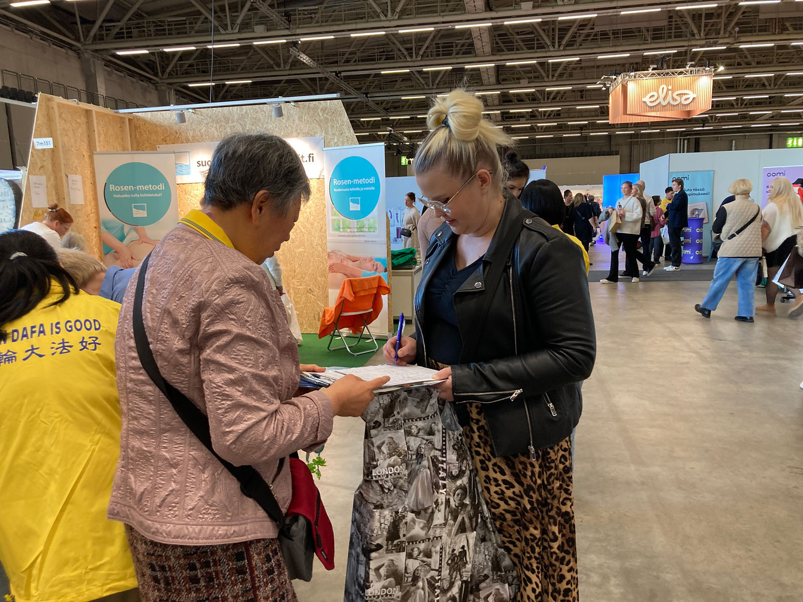 لیلیا، معلم زبان فنلاندی، بدون هیچ تردیدی دادخواست را امضا کرد. او گفت یکی از شاگردان چینیاش، پیشتر درباره آزار و شکنجه فالون دافا در چین برایش گفته بود و اکنون که تمرینکنندگان را درحال انجام تمرینات دید، به یادگیری آنها علاقهمند شده است.