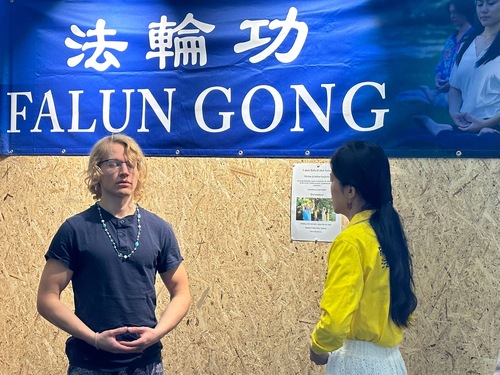 مردی یادآوری کرد که بیش از ۲۰ سال پیش، تمرینکنندگان فالون دافا را دیده بود که در برابر ایستگاه مرکزی قطار درحال انجام تمرینات بودند. آن زمان با آنها صحبت کرده بود و اکنون از دیدار دوبارهشان در این نمایشگاه خوشحال بود.