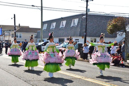 (Minghui.org) تمرینکنندگان فالون دافا در 19اکتبر۲۰۲۵، در سیوچهارمین راهپیمایی سالانه روز کلمب در شهرستان اوشن در سیساید هایتز شرکت کردند. رقص طبل کمری و رقص نیلوفرآبی دختران آسمانی آنها فرهنگ سنتی چین را به این جشن آورد و تحسین گستردهای را برانگیخت.