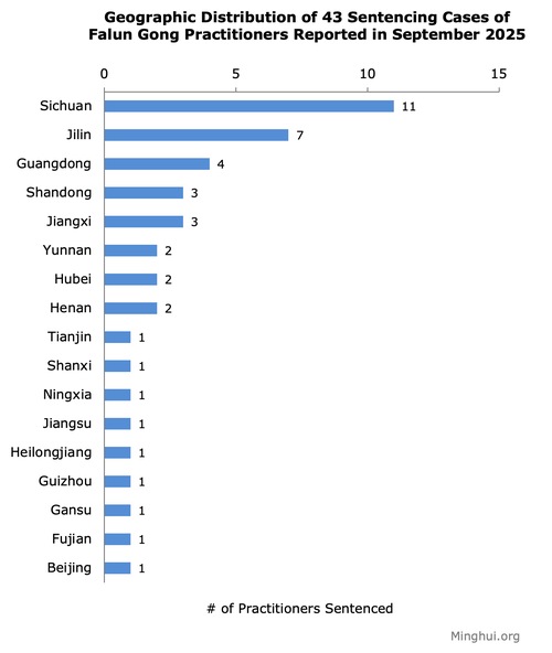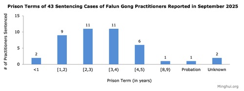 (Minghui.org) در مجموع ۴۳ مورد از محکومیت تمرینکنندگان فالون گونگ به حبس بهدلیل ایمانشان، در سپتامبر۲۰۲۵ گزارش شده است.