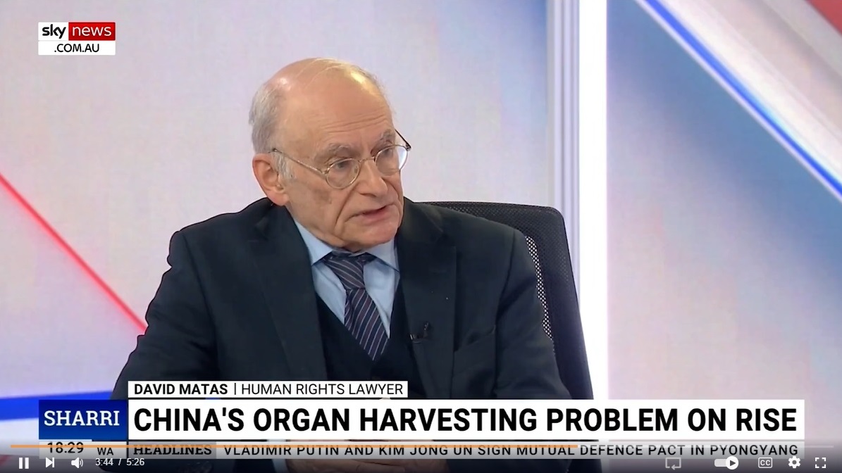 آقای ماتاس در مصاحبهای با اسکای نیوز استرالیا در ژوئن۲۰۲۴، درباره برداشت اعضای بدن افراد زنده توسط ح.ک.چ صحبت میکند. (اسکرینشات)