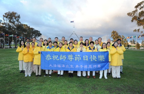 تمرینکنندگان در کانبرا، استرالیا، جشن نیمه پاییز را به استاد تبریک گفتند.