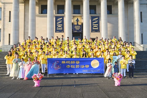 تمرینکنندگان در سیدنی، استرالیا، جشن نیمه پاییز را به استاد تبریک گفتند.
