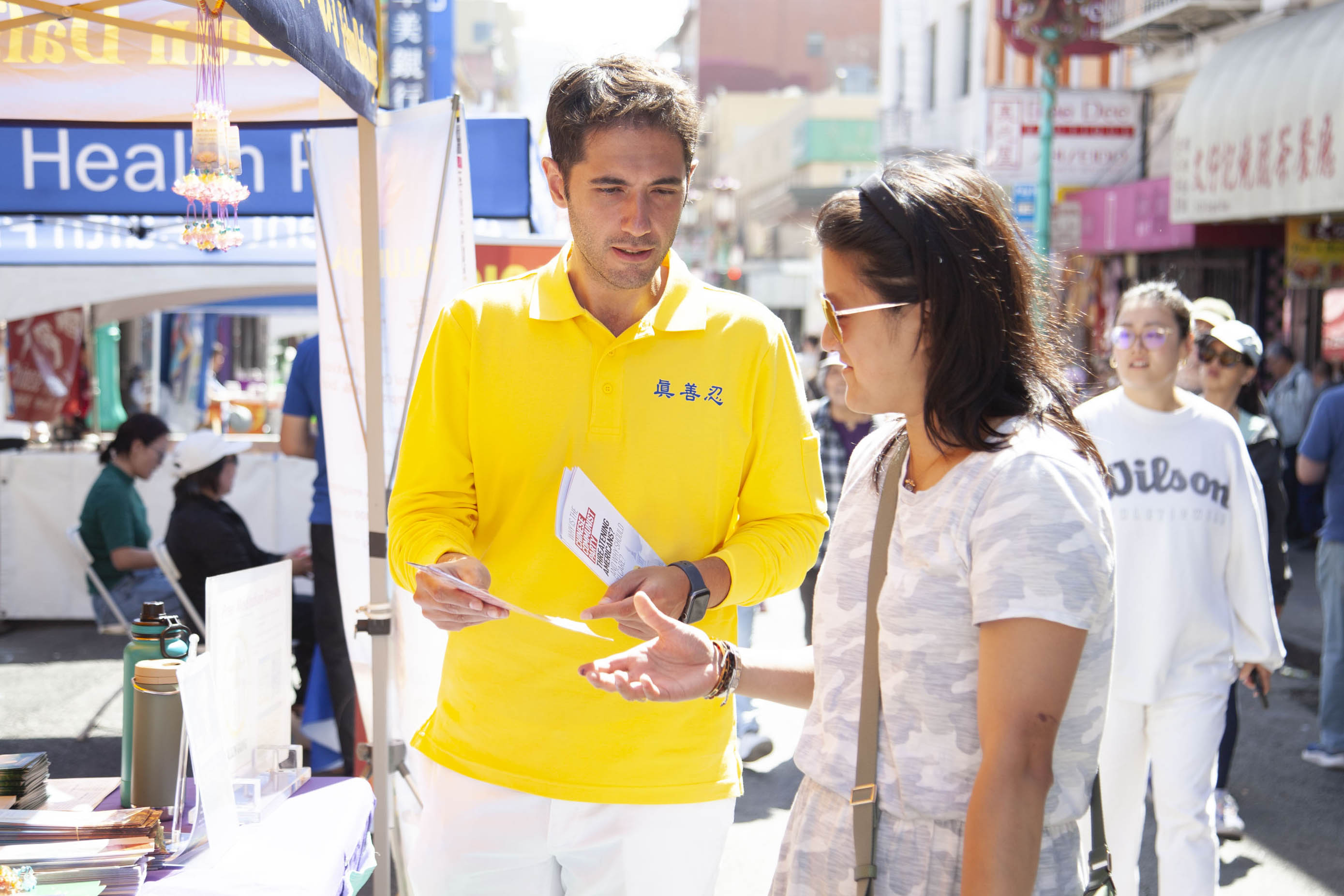 آنکیتا که اخیراً به سانفرانسیسکو نقلمکان کرده است، گفت آن روز فقط برای پیادهروی از خانه خارج شد که غرفه تمرینکنندگان را دید. «امروز واقعاً روز فوقالعادهای است. عالی است که فالون دافا را یاد گرفتم و تمرین کردم. از آن خوشم آمد.»