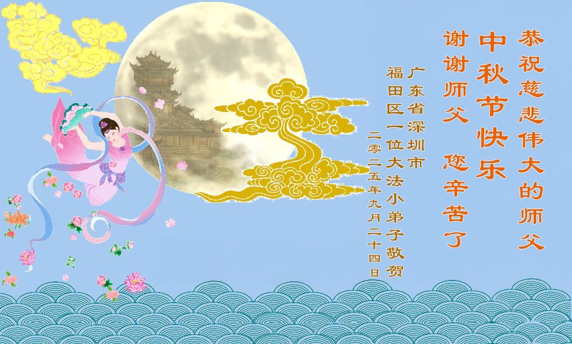 یک تمرینکننده نوجوان فالون دافا از منطقه فوتیان در شهر شنژن، استان گوانگدونگ، نوشت: «استاد، جشن نیمه پاییز مبارک! از نجات نیکخواهانه و رحمت بیپایان بوداییتان سپاسگزارم. افکار و اعمال درستتری خواهم داشت و در تزکیه کوشاتر خواهم بود!»