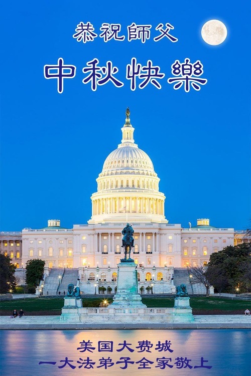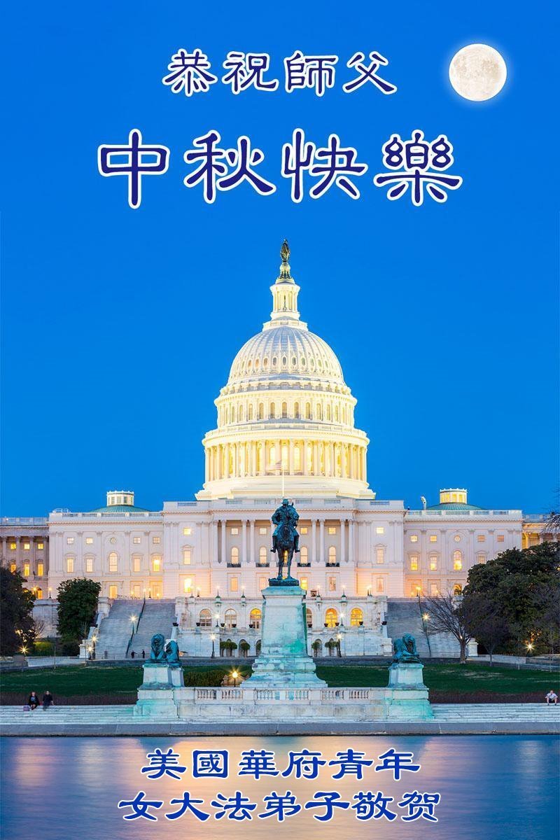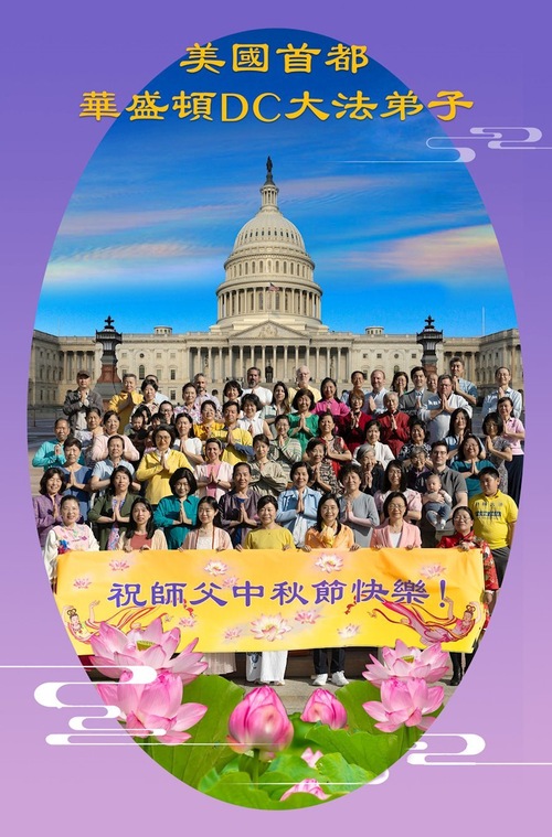 تمرینکنندگان فالون دافا در واشنگتن دیسی، ایالات متحده، با احترام جشن نیمه پاییز را به استاد تبریک گفتند!