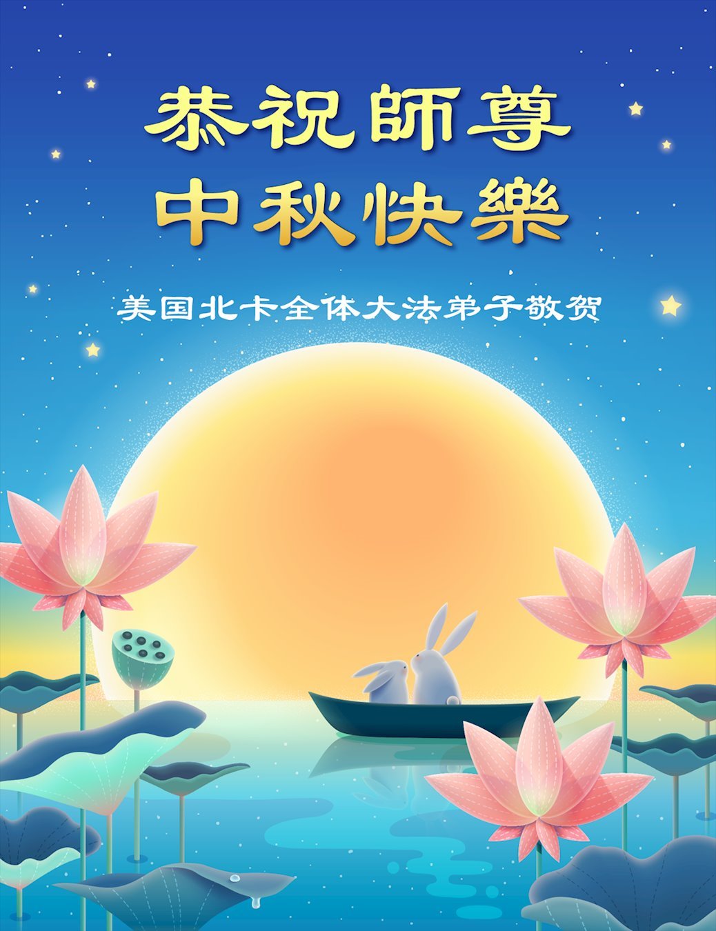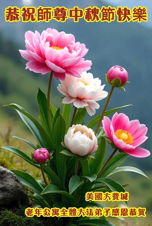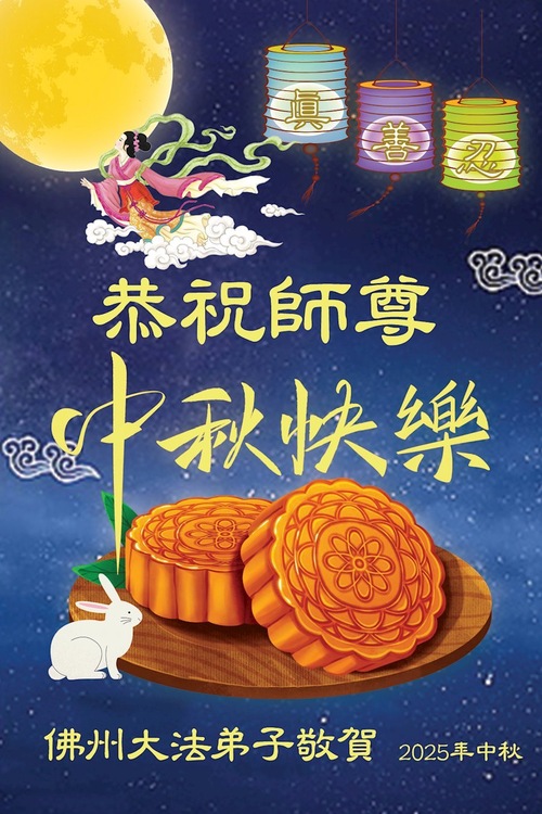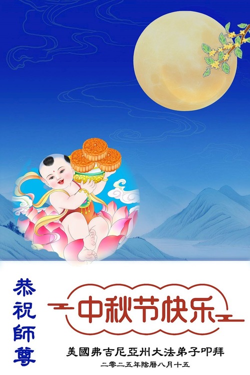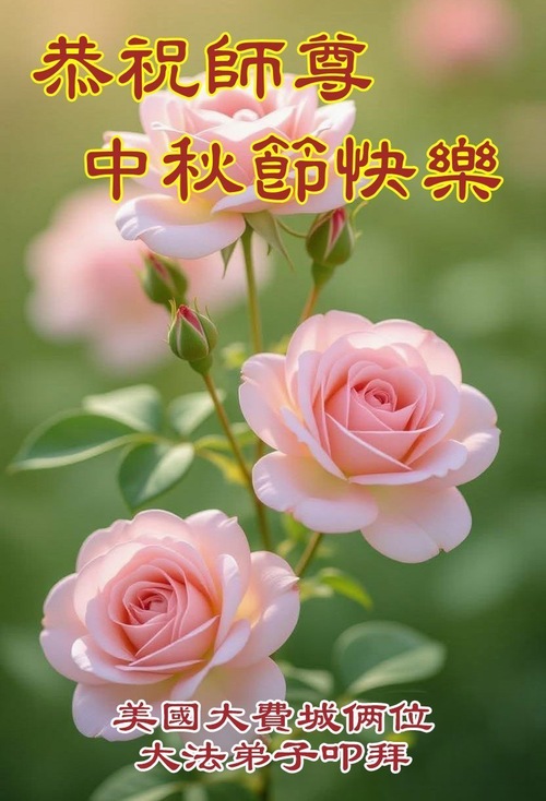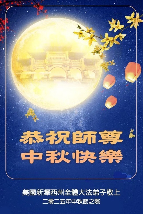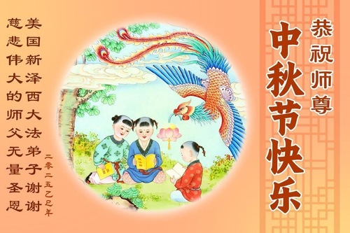 خانوادهای پنجنفره از تمرینکنندگان فالون دافا در ایالت نیوجرسی، ایالات متحده، با احترام جشن نیمه پاییز را به استاد نیکخواه تبریک گفتند!