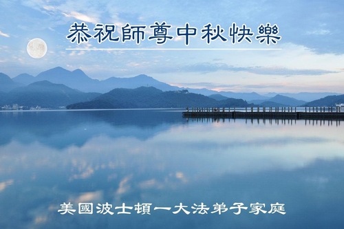 خانوادهای از تمرینکنندگان فالون دافا در شهر بوستون، ایالات متحده، با احترام جشن نیمه پاییز را به استاد تبریک گفتند!