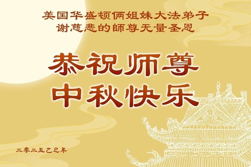 دو خواهر تمرینکننده در واشنگتن دیسی، ایالات متحده، با احترام جشن نیمه پاییز را به استاد تبریک گفتند!