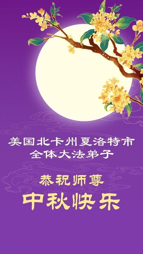 تمامی تمرینکنندگان فالون دافا در شهر شارلوت، ایالت کارولینای شمالی، ایالات متحده، با احترام جشن نیمه پاییز را به استاد تبریک گفتند!