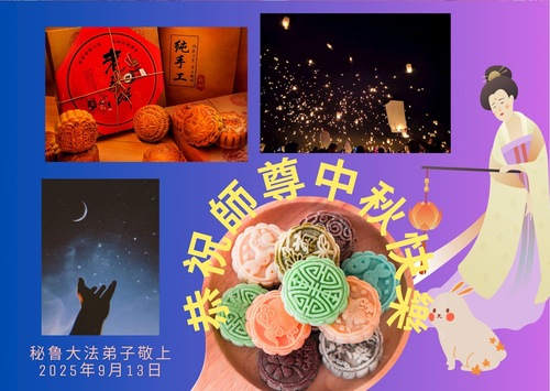(Minghui.org) جشن نیمه پاییز زمانی است برای دورهمی خانوادهها و جشنگرفتن. امسال، تمرینکنندگان فالون دافا در ۶۰ کشور و منطقه با ارسال پیامهای تبریک خود به مینگهویی، از بنیانگذار فالون دافا، استاد لی هنگجی، قدردانی و تعطیلاتی شاد را برای ایشان آرزو کردند.