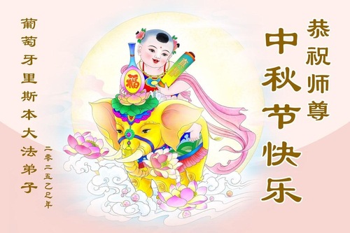 تمرینکنندگان فالون دافا در لیسبون، پرتغال، جشنواره نیمه پاییز را به استاد محترم تبریک میگویند!