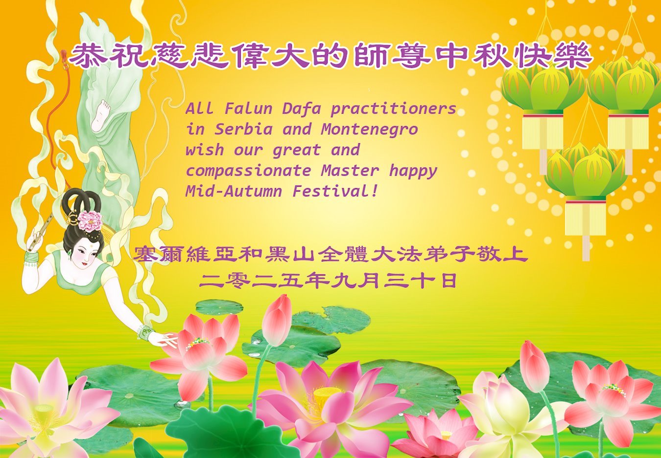 تمرینکنندگان فالون دافا که در صربستان ساکن هستند، جشنواره نیمه پاییز را به استاد تبریک میگویند!