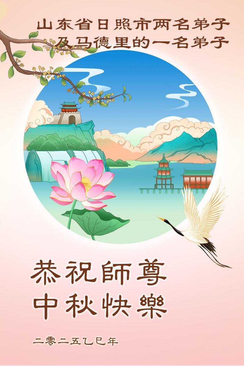 یک تمرینکننده در مادرید، اسپانیا و دو تمرینکننده در ریژائو، استان شاندونگ چین جشنواره نیمه پاییز را به استاد تبریک میگویند!