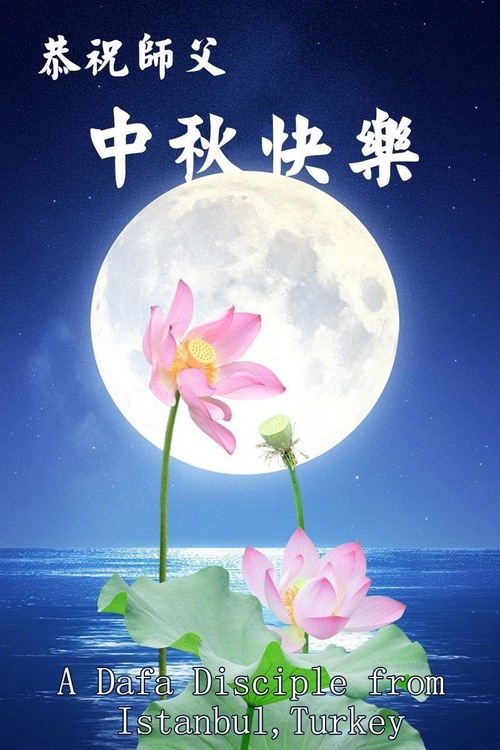 یک تمرینکننده در استانبول، ترکیه، جشنواره نیمه پاییز را به استاد تبریک میگوید!