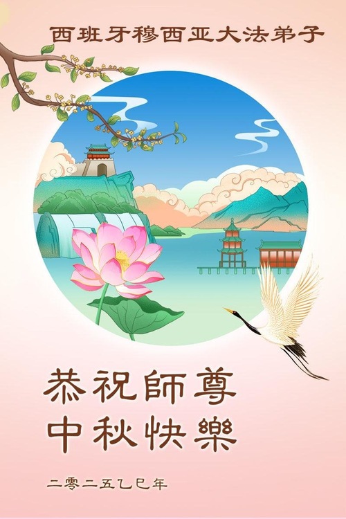 تمرینکنندگان فالون دافا در مورسیا، اسپانیا جشنواره نیمه پاییز را به استاد تبریک میگویند!