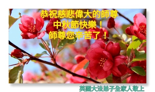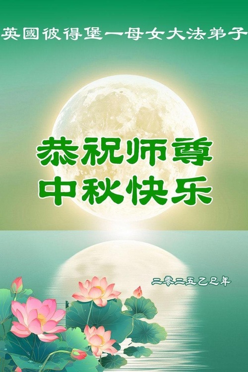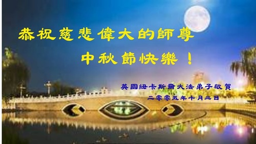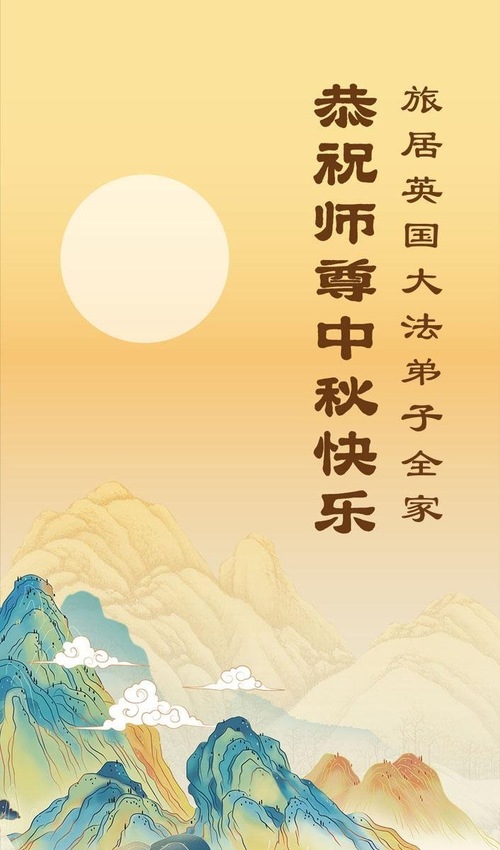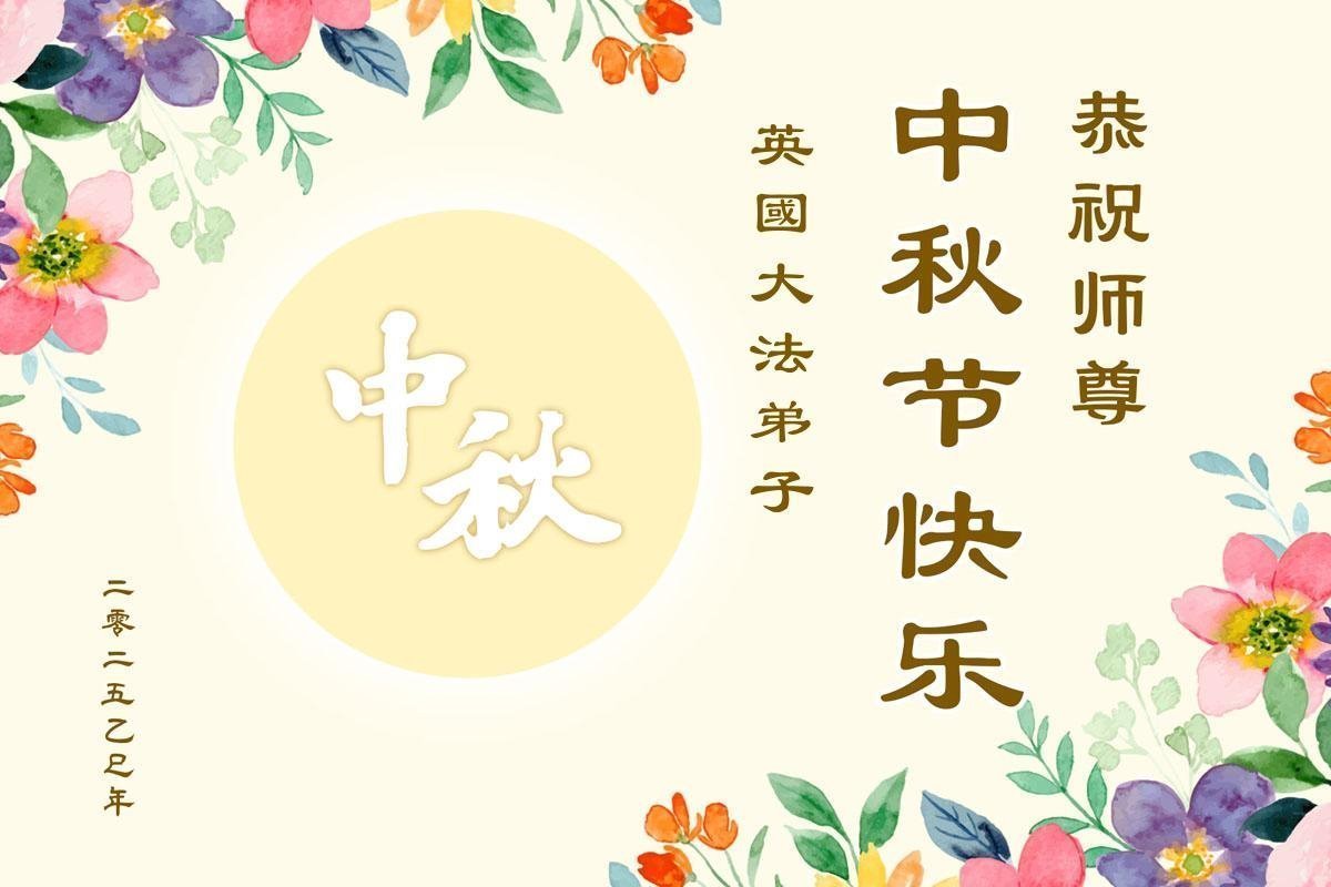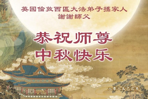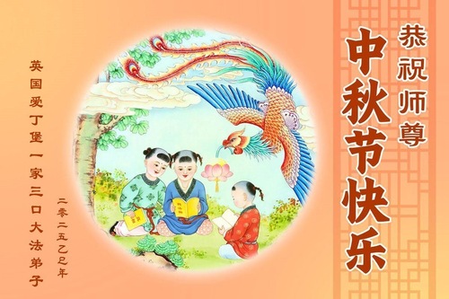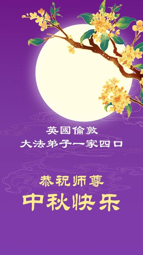 خانواده یک تمرینکننده فالون دافا در بریتانیا، جشن نیمه پاییز را به استاد تبریک گفتند!