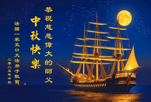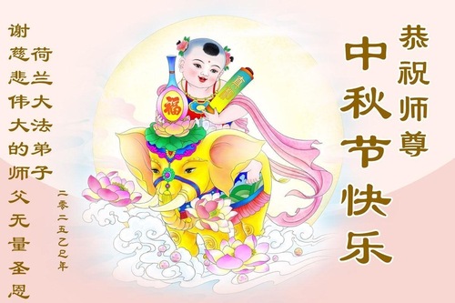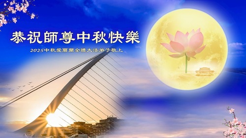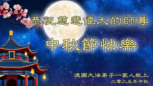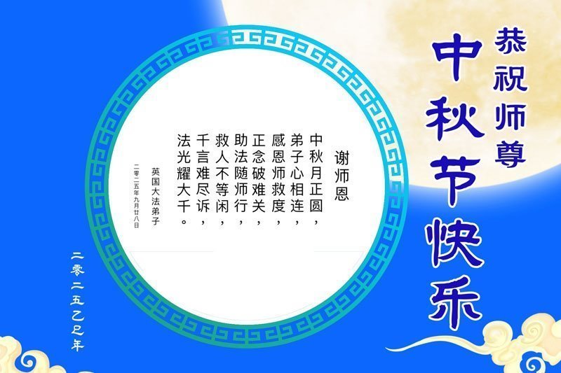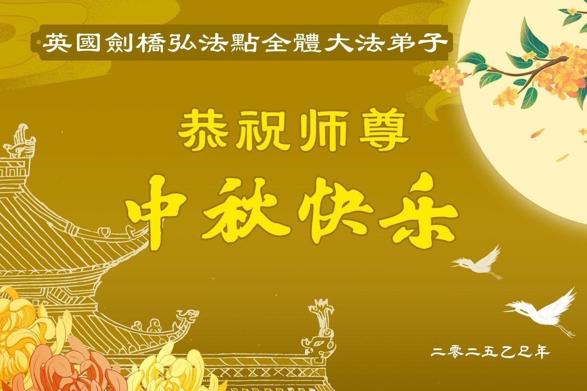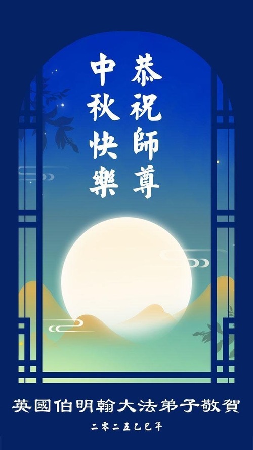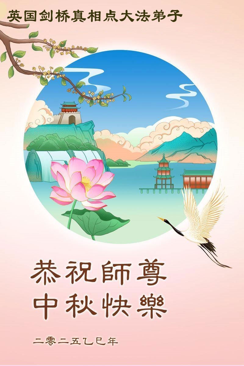 خانواده یک تمرینکننده فالون دافا در بریتانیا، جشن نیمه پاییز را به استاد تبریک گفتند!