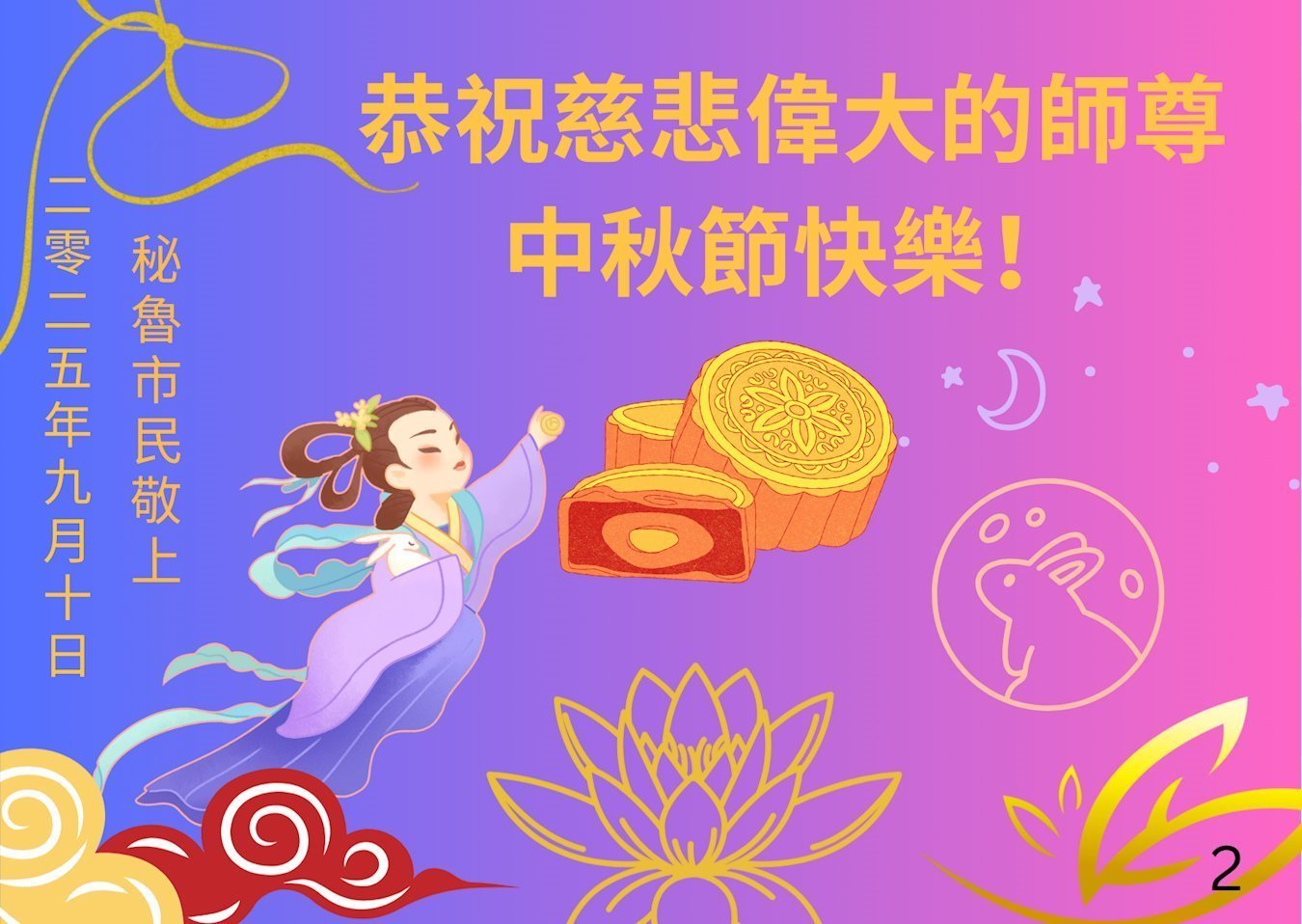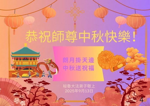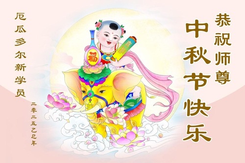 یک تمرینکننده جوان چینی فالون دافا که بهطور موقت در اکوادور اقامت دارد، با احترام جشن نیمه پاییز را به استاد تبریک میگوید!