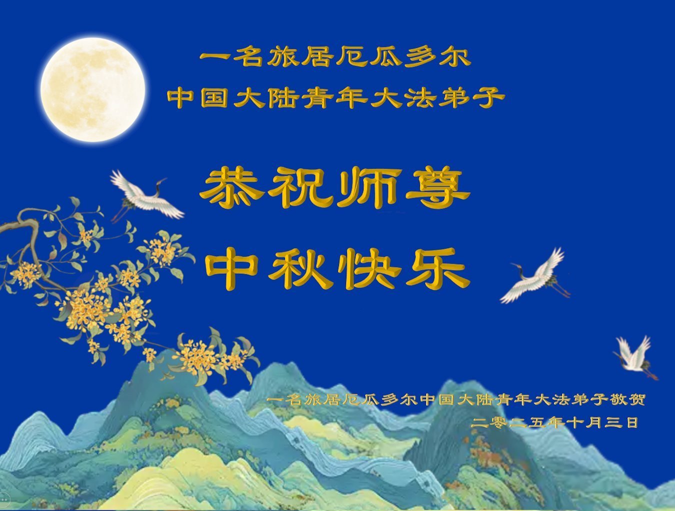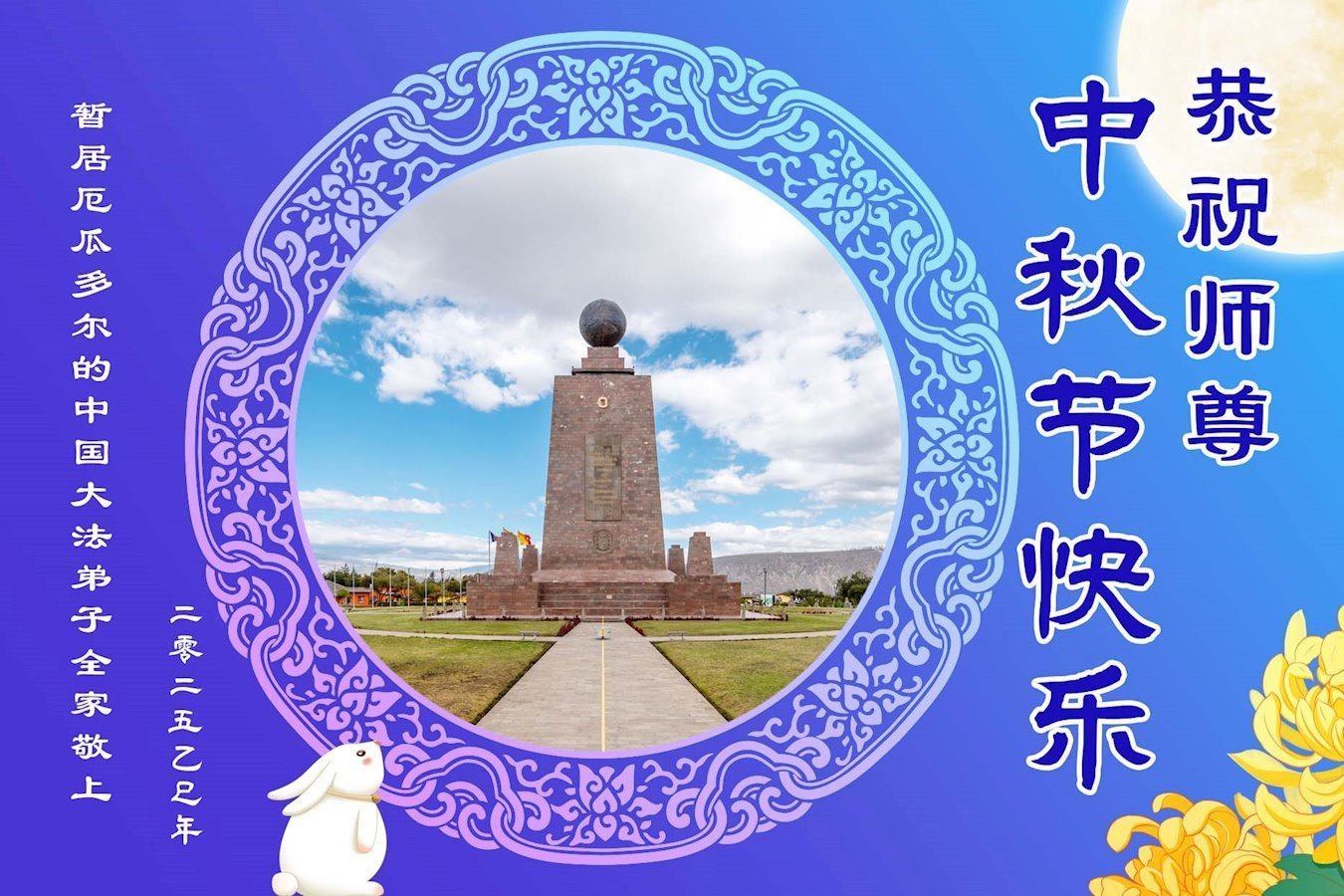 یک تمرینکننده چینی فالون دافا که بههمراه خانوادهاش بهطور موقت در اکوادور اقامت دارد، با احترام جشن نیمه پاییز را به استاد تبریک میگوید!