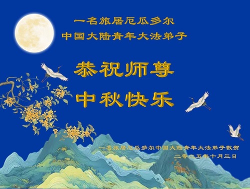 یک تمرینکننده چینی فالون دافا که بهطور موقت در اکوادور اقامت دارد، با احترام جشن نیمه پاییز را به استاد تبریک میگوید!