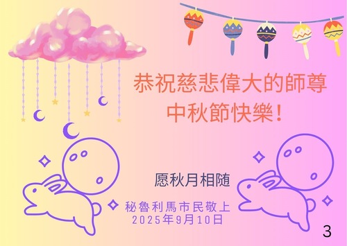 تمرینکنندگان فالون دافا در پرو، با احترام جشن نیمه پاییز را به استاد بزرگ و نیکخواه تبریک میگویند!