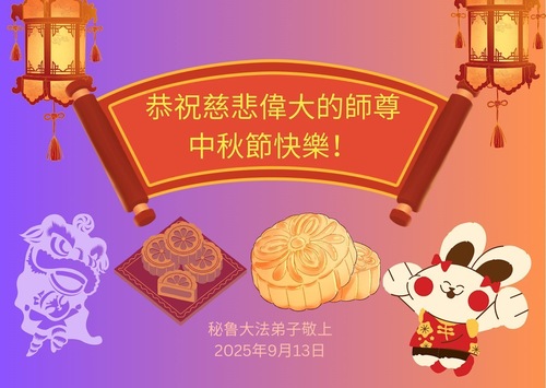 یک تمرینکننده چینی فالون دافا که بهطور موقت در اکوادور اقامت دارد و بستگان و دوستانش، با احترام جشن نیمه پاییز را به استاد تبریک میگویند!