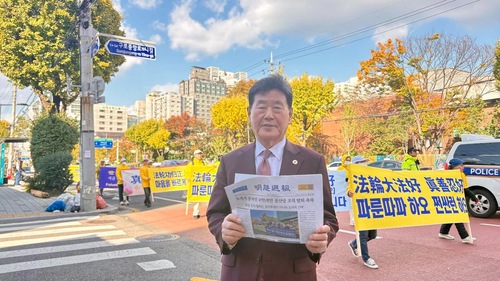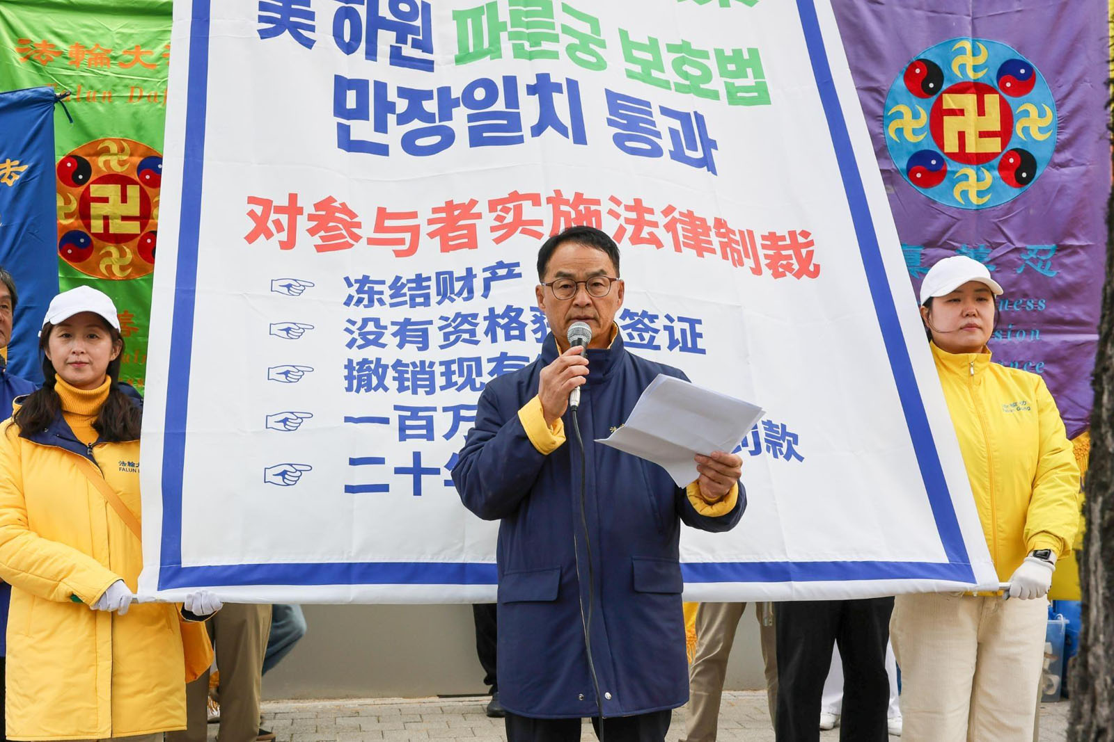 دکتر وو سیلی، دبیرکل انجمن فالون دافا در کرهجنوبی، پیش از این راهپیمایی، بیانیهای قرائت کرد.