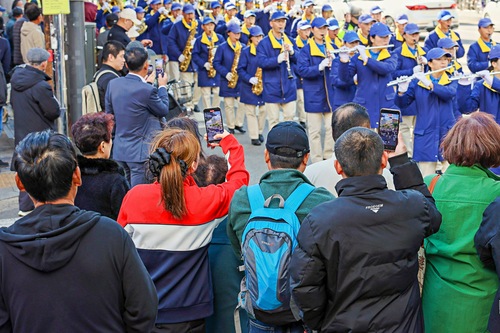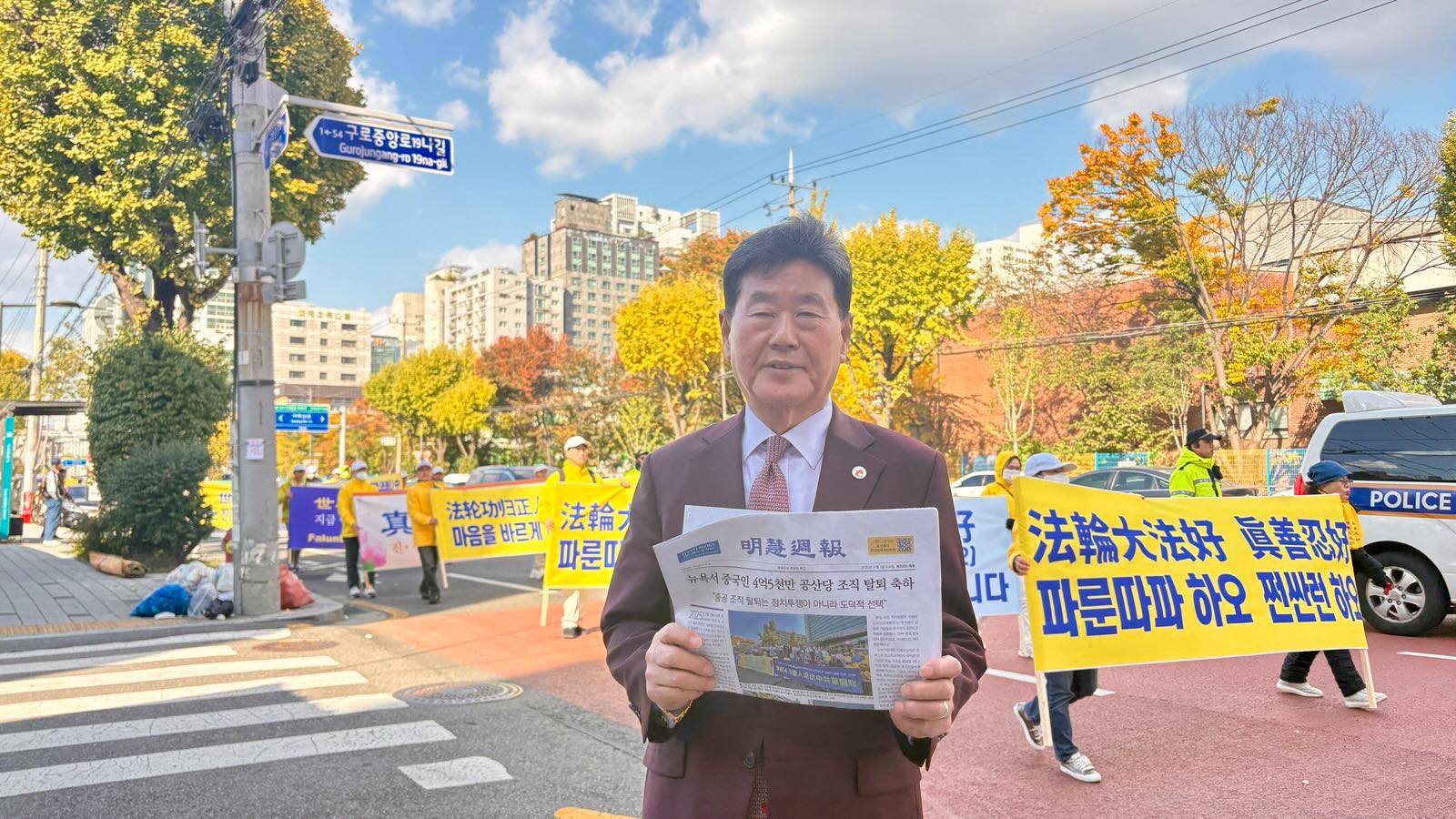 تمرینکنندگان فالون گونگ در روز راهپیمایی در جامعه چینی، نسخه کرهای و چینی هفتهنامه مینگهویی را توزیع کردند.