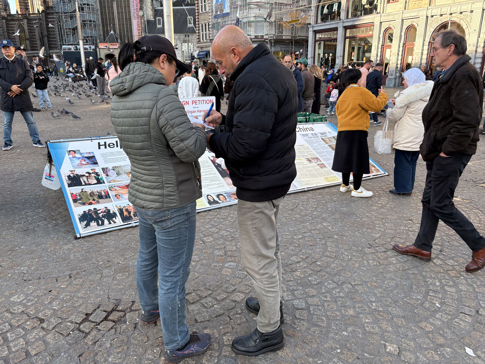 شریف صلاحالدین، حسابداری از پاکستان که در هلند کار میکند، همراه همسرش دادخواست را امضا کرد. این نخستین بار بود که او درباره آزار و شکنجه فالون دافا و برداشت اعضای بدن افراد زنده از زندانیان عقیدتی میشنید، اما گفت خوشحال است که میتواند از این موضوع حمایت کند.