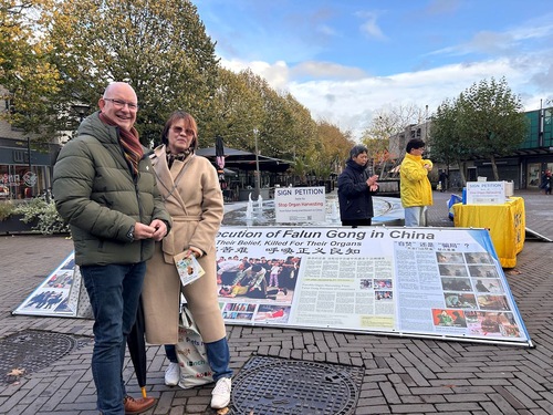 مایکل و همسرش سوزان، ساکنان محلی، به غرفه فالون دافا در اوس رفتند و به تمرینکنندگان گفتند که دادخواست اینترنتی توقف آزار و شکنجه فالون دافا توسط ح.ک.چ را امضا کردهاند. مایکل گفت: «ما معتقدیم هر انسان، هر فرهنگ و هر باور باید از هرگونه سرکوب از سوی دولت یا گروههای دیگر در امان باشد.» آنها از شنیدن خبر فاجعه برداشت اعضای بدن تمرینکنندگان زنده فالون دافا بهدست ح.ک.چ متأثر شدند و برای تمرینکنندگان آرزوی موفقیت کردند.