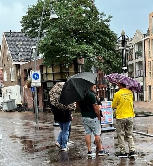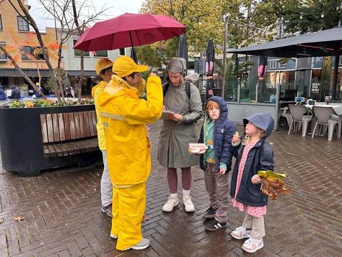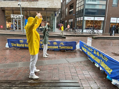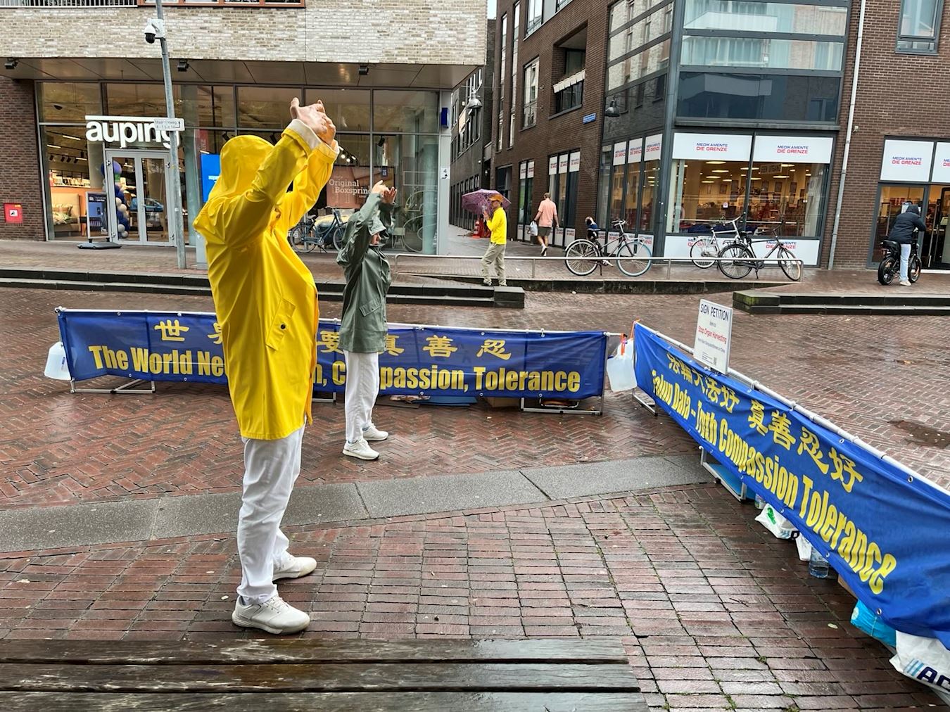 هنگامی که تمرینکنندگان مشغول برپایی غرفه در شهر اده بودند زنی چینی به آنان نزدیک شد. وقتی یکی از تمرینکنندگان برایش درباره فالون دافا توضیح داد، او گفت ۳۰ سال است که در هلند زندگی میکند، اما تاکنون نام این روش معنوی را نشنیده بود. او بروشورهای معرفی را برداشت تا بیشتر مطالعه کند.